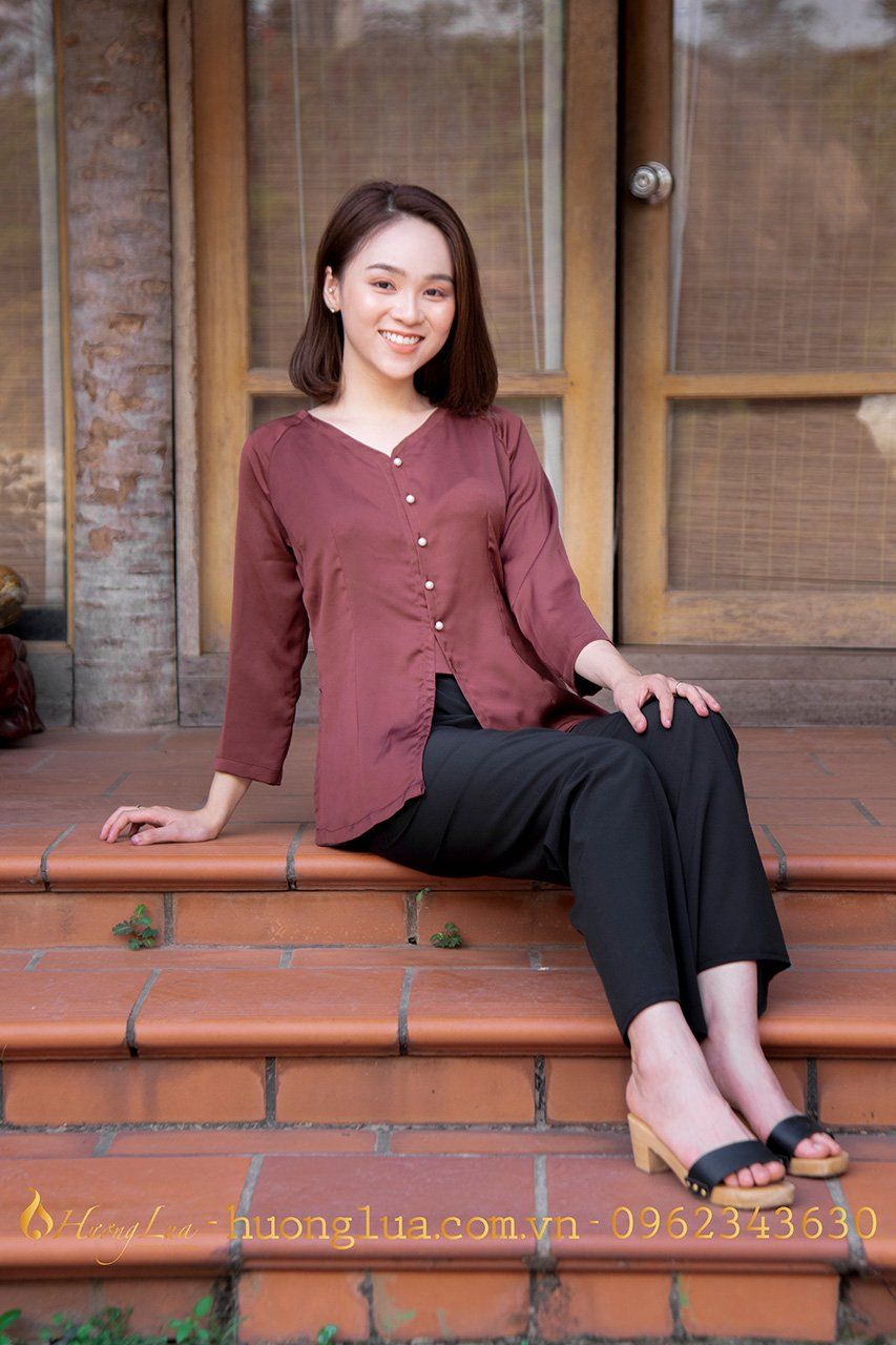 - Áo bà ba màu nâu trơn không họa tiết