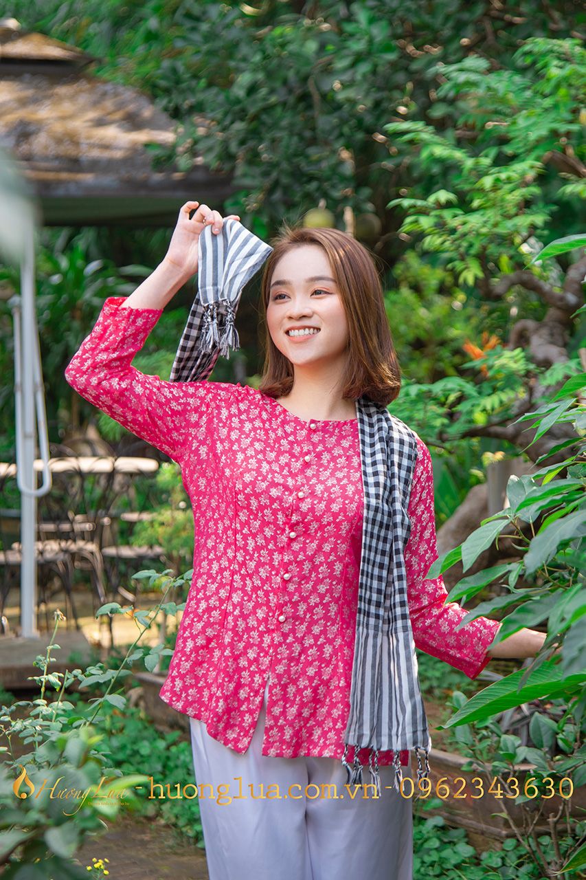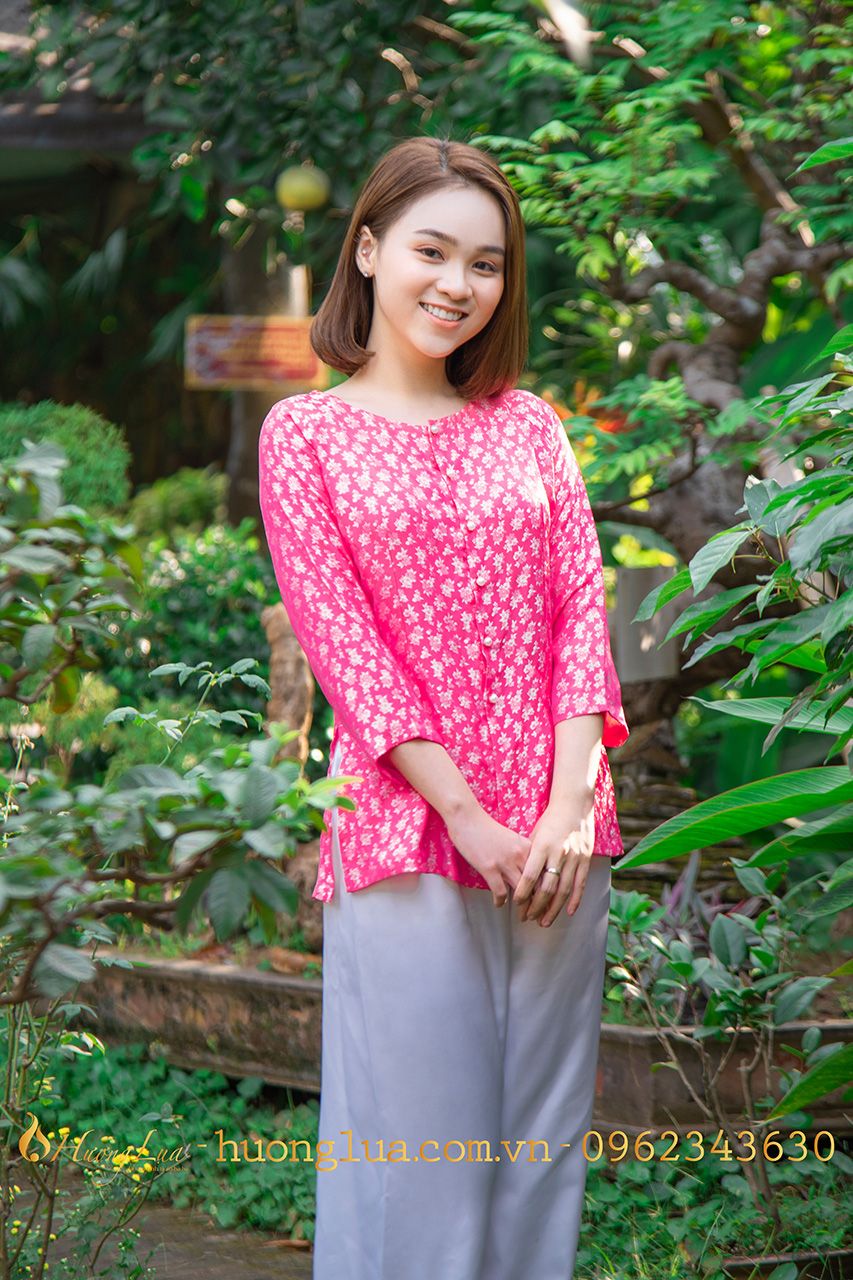 - Áo bà ba màu hồng có họa tiết